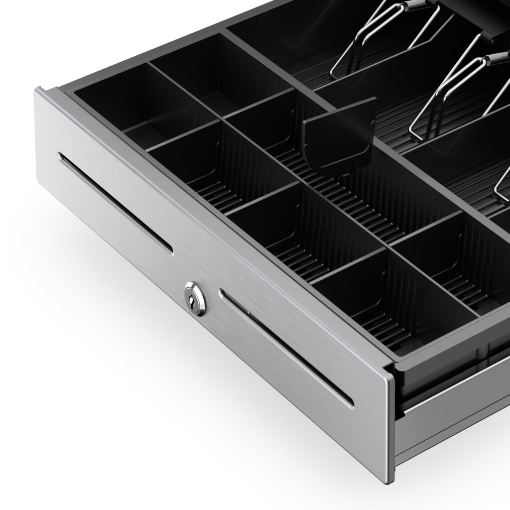 Star CD4 Series cash drawers feature a reinforced top creating added strength to securely support POS terminals and tablets.