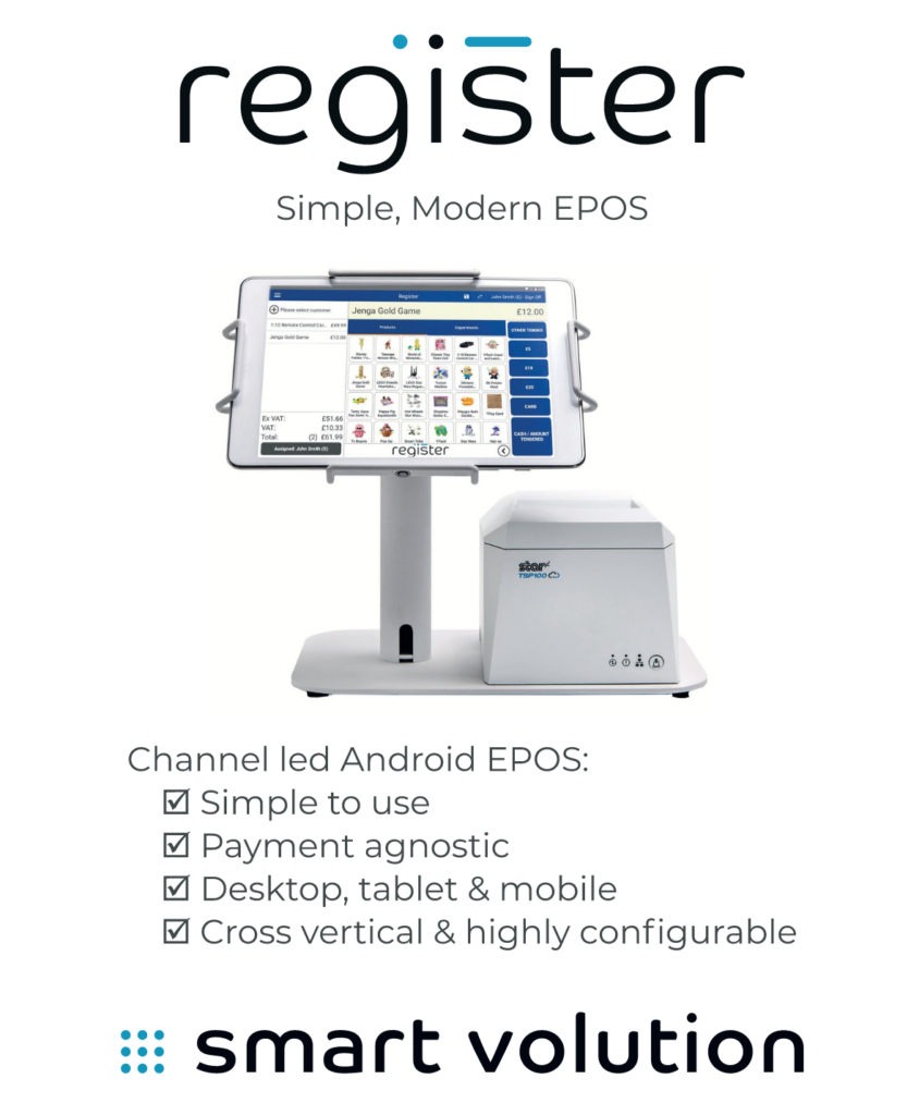 The Smart Volution Register EPOS solution will also be shown on the stand with Star’s latest TSP100IV printer. Smart Volution help businesses deliver an exceptional purchasing experience and drive profitability with centrally managed operations and reporting by providing simple and efficient Electronic Point Of Sale (EPOS) systems. Register is a family of cost-effective EPOS solutions running on Android devices which allow merchants to maximise their ROI from investing in new technology.